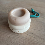 Une fois le savon complètement usé, la petite pièce encastrée restante s’enlève pour être encastrée dans le savon SAVUM suivant.